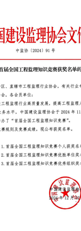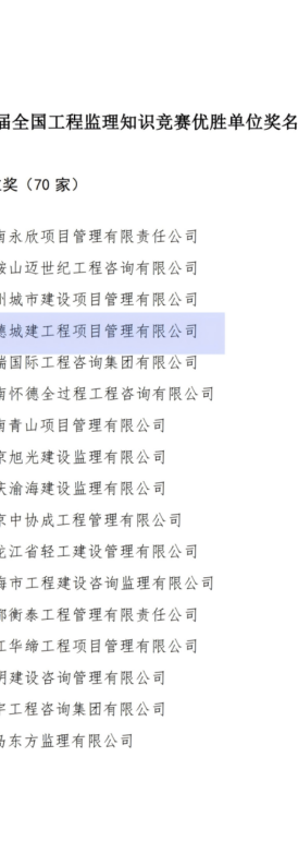 承擔工程監(jiān)理和全過程工程咨詢服務的多個項目先后榮獲6項國家級獎項(魯班獎兩項、國優(yōu)工程獎兩項、中國鋼結構金獎、中國安裝之星獎),及數(shù)十項省級優(yōu)質(zhì)工程獎。